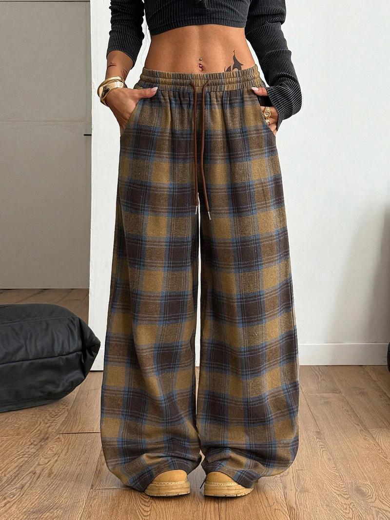 Women'S Casual Plaid Loose Long Pants, Comfortable and Stylish, Perfect for Daily Wear, Ladies' Fashion Bottoms